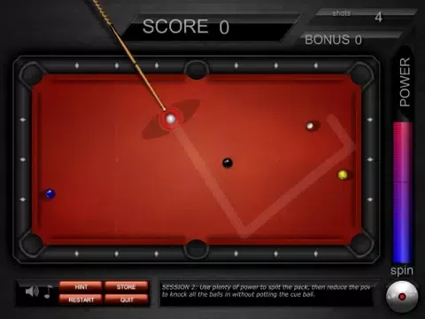 How to play: Game play is simple,like real billiards,you can control the ballot direction,a clampdown,cue point contact with the white ball.