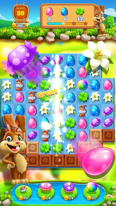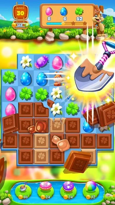 ●Create Crazy BOMBS by matching four or more elements and blast the Easter Garden!