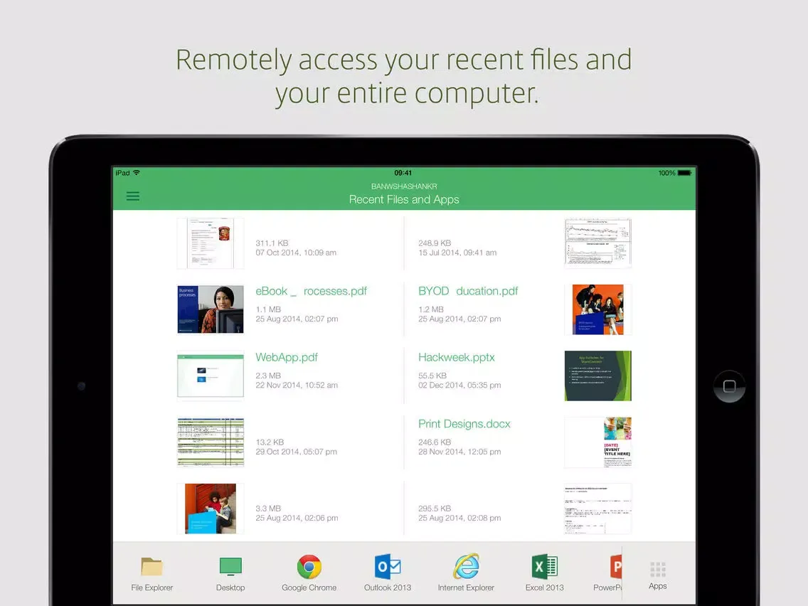 ShareConnect brings your desktop to your fingertips; your files and apps are optimized for your iOS mobile device, so you can remotely access your work in a whole new way. You get instant file access, and your desktop applications feel like they were made for your iPad. You can tap, double tap, swipe and have full keyboard control in a new, easy-to-use remote computer experience.