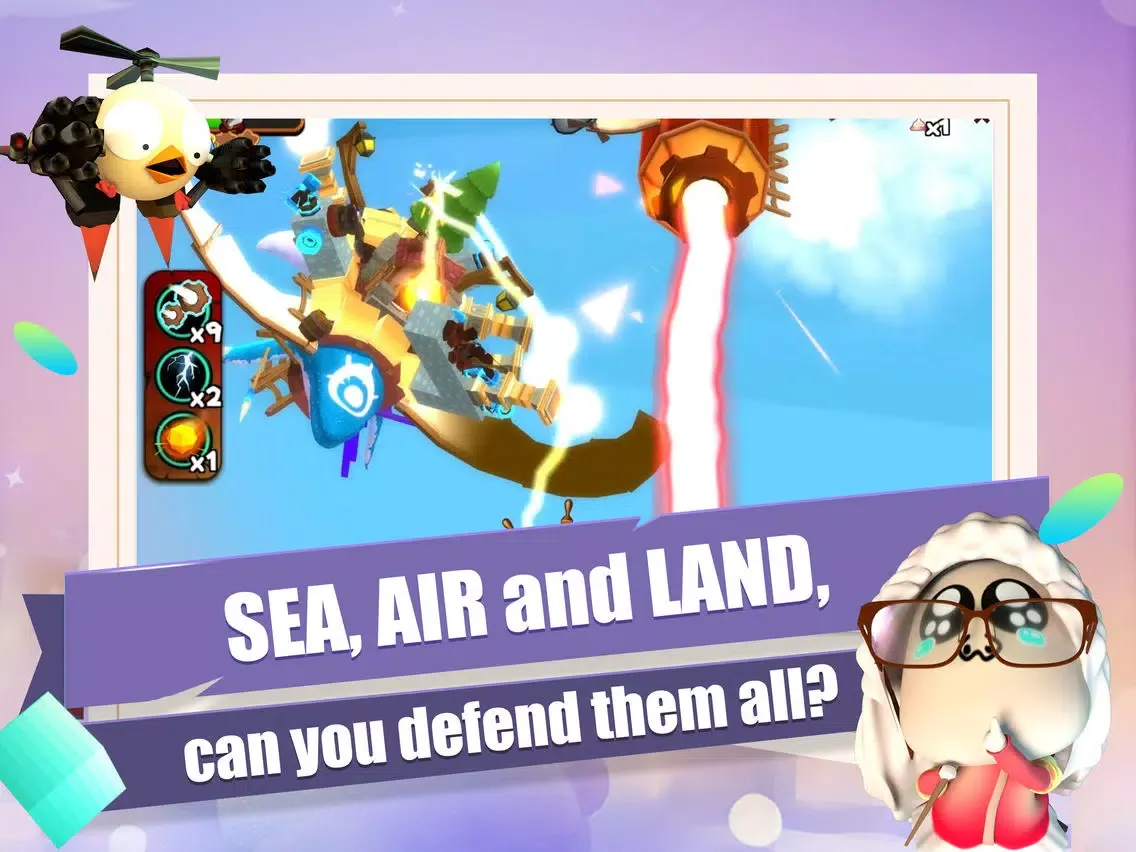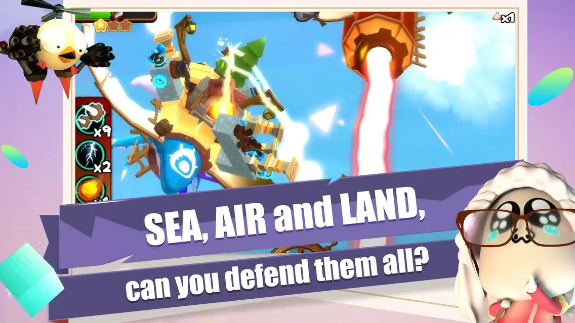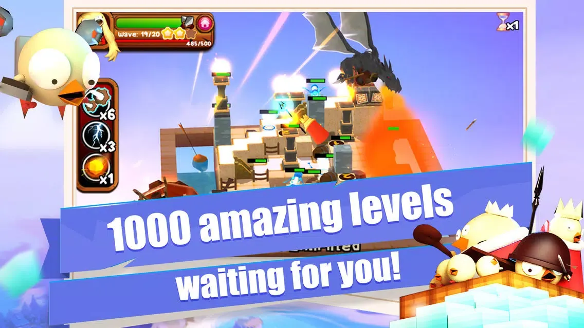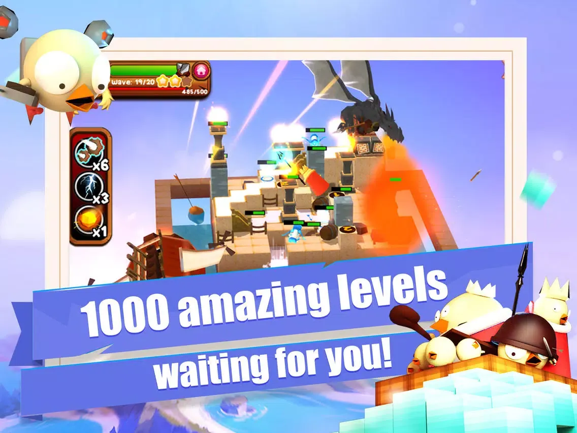 As a 3D AR tower defense game, 3DTD brings you not only maps rotated freely by 360°, but also a distinctive physics engine with outstanding 3D effects. Shield against arrows from the chickens, slant rolling rocks with blocks and blow up chickens with a hammer!