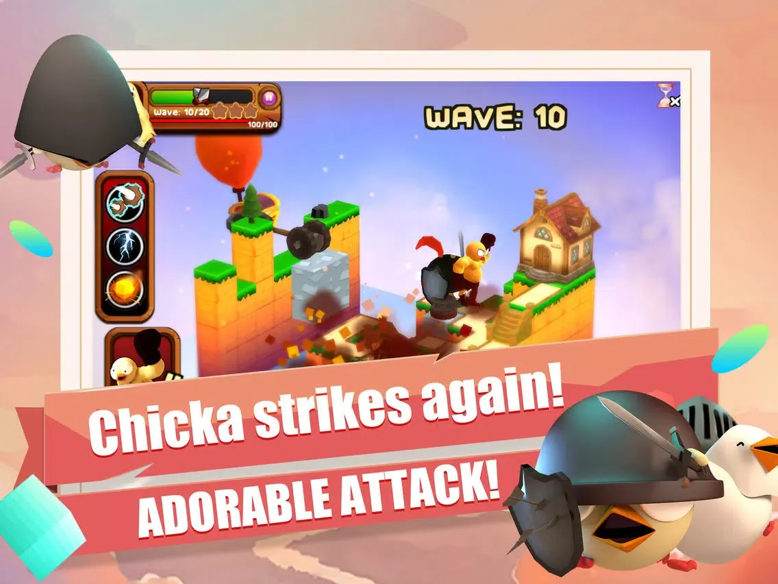 Simply rotate your view with one finger and defend against 360° all-out attacks from the chickens!