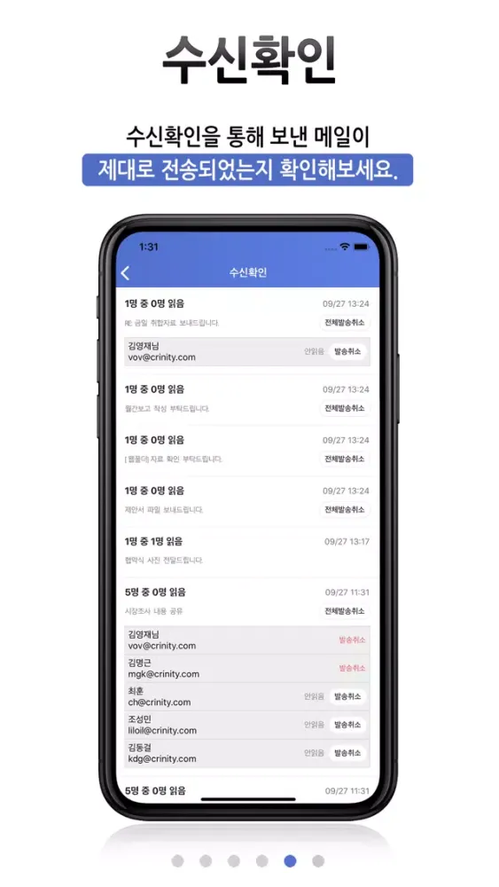 - 발송된 메일에 대해 수신확인이 가능합니다.