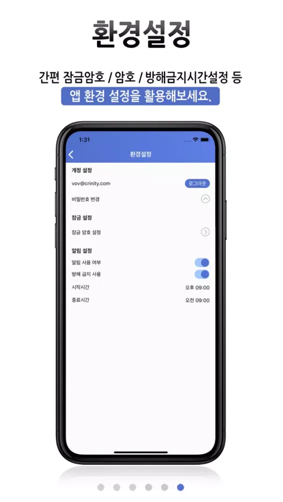 - 알림설정 및 방해금지 사용시간 설정이 가능합니다.