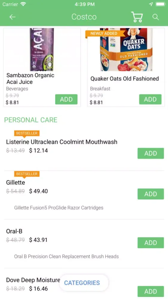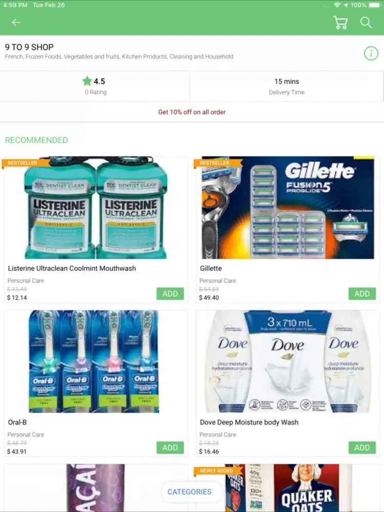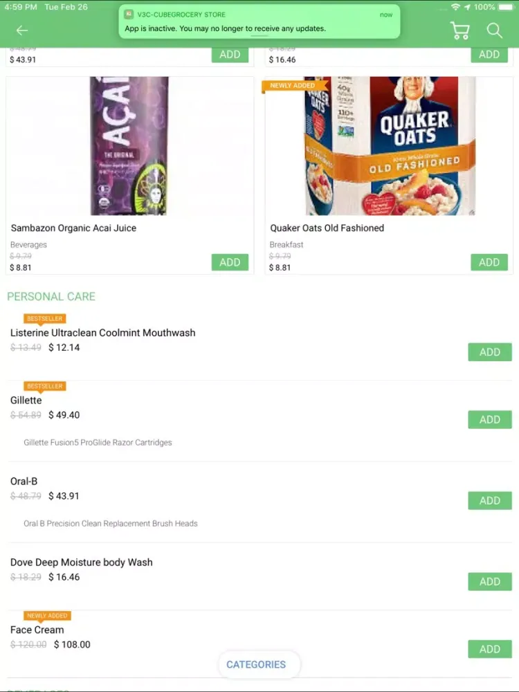 Order grocery items online from nearest stores through our app. You can browse through store categories to place the grocery order.