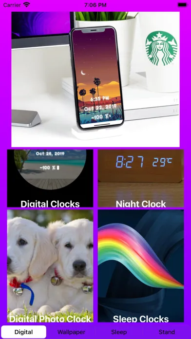 Download our beautiful & aesthetic wallpaper for your iPhone or iPad now! ClockDisplay is a very dreamy digital clock wallpaper that displays the current time in digital clock format, date, and battery status with beautiful HD and 4K Wallpapers that are carefully selected to highlight your Retina Display screen. Use our app to turn your phone into a stunning clock on the nightstand!