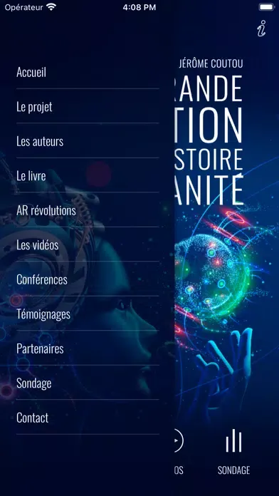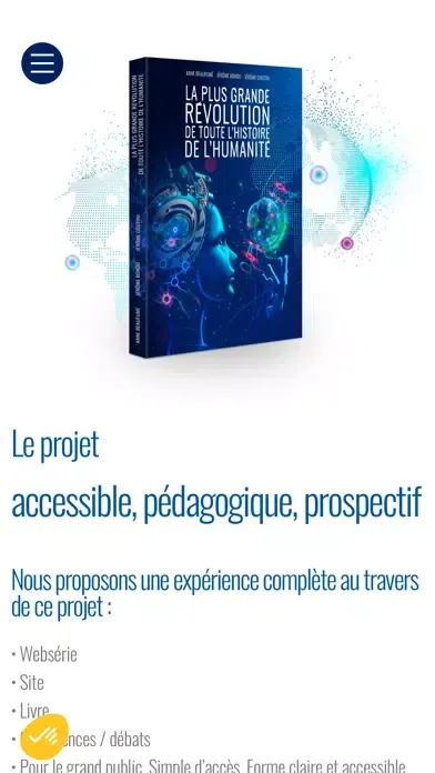 Application du projet « La plus grande révolution de toute l’Histoire de l’humanité » intégrant De La Réalité augmentée pour le livre, le sondage des plus importantes révolutions, les informations sur le projet et les interviews.