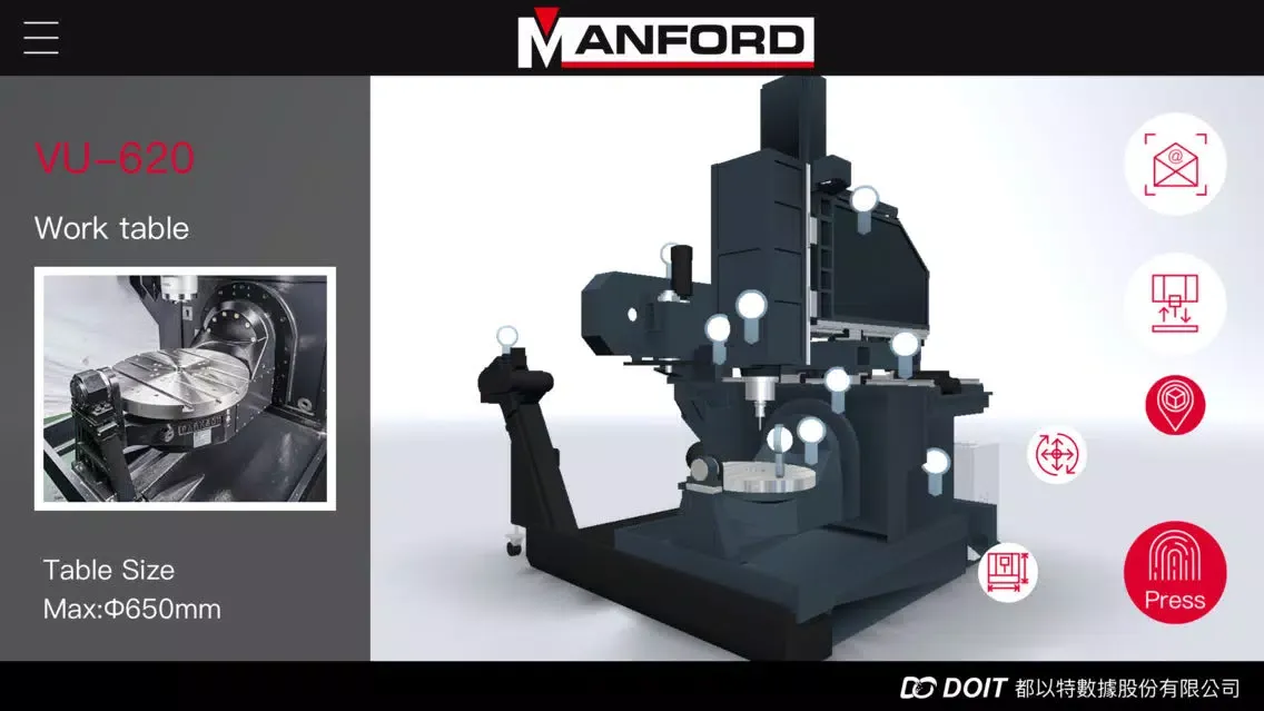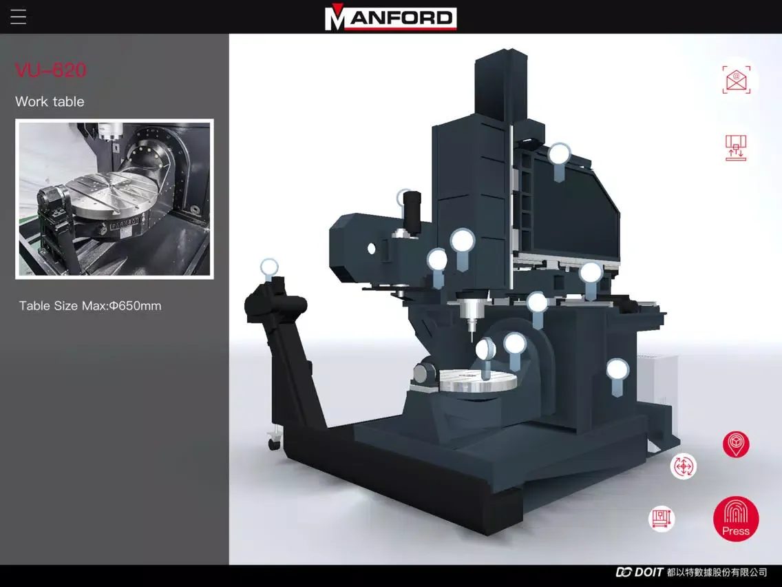 With our unique and innovative mobile marketing mode we allow the users to experience and interact with the machine 3D model through 3D display.