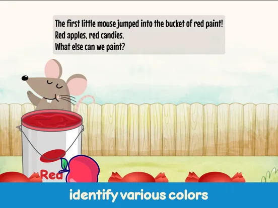 * Interactive Learning: The app is not just a story; it's an interactive learning experience. Children can tap to interact with various elements (such as the tree, car, apple, candy and so on) in the story. Each interaction is designed to reinforce color recognition and cognitive skills.