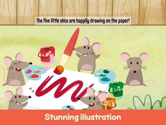 Welcome to A Mice painting story, an enchanting interactive book app designed exclusively for young children. This delightful app combines the charm of storytelling with engaging learning activities, making it a perfect tool for early childhood education.