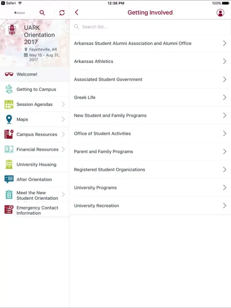 ภาพหน้าจอของ UARK Orientation 2017 iPad