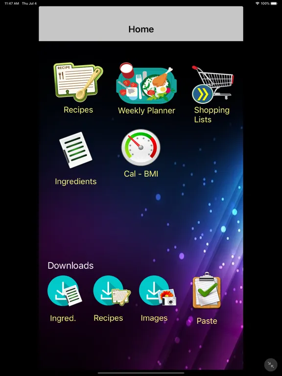 Tap on 'Meal Planner', select a recipe and 'Add to' day of choice. Once a meal plan is created, simply tap on 'Shopping List' to generate a shopping list sorted by Department store sections.