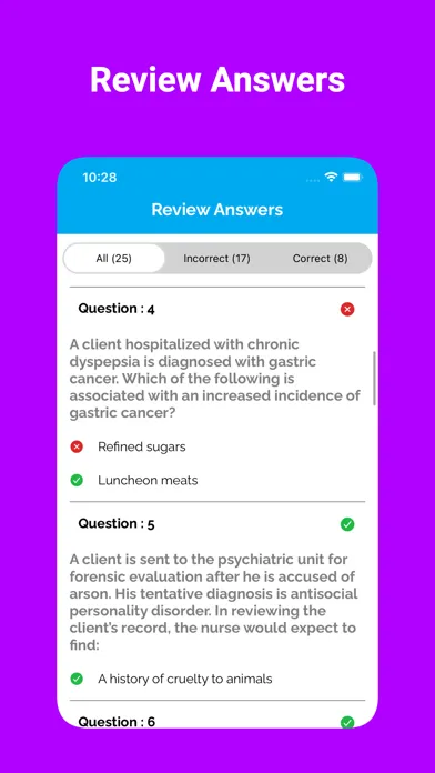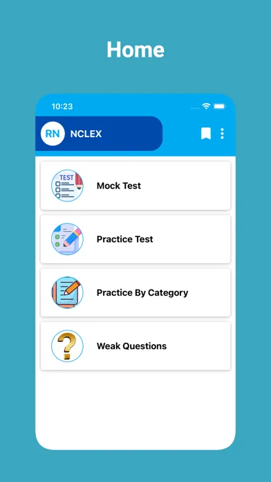 In addition, the app provides a list of weak questions based on previous mock and practice tests on NCLEX Test.