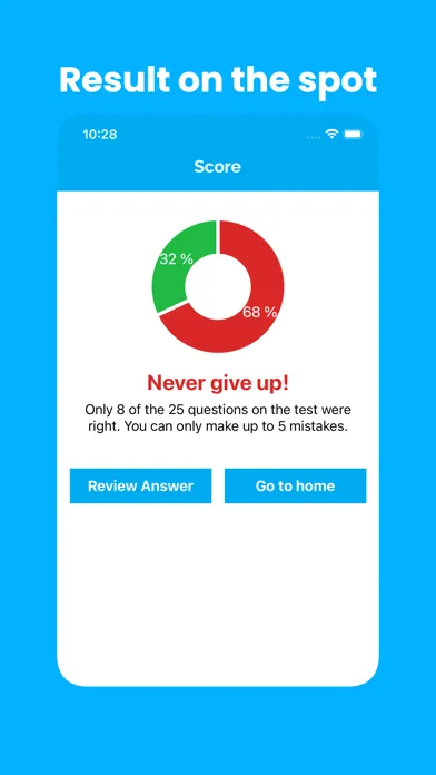 - Review test questions with answers and filter about right and wrong answers
