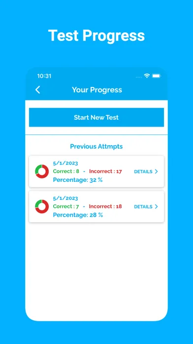 App tracks the users completed mock and practice tests. The app tracks their progress, allowing them to identify areas for improvement and track their overall progress.