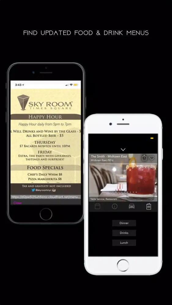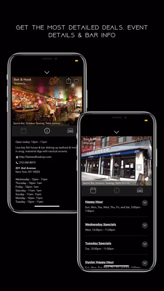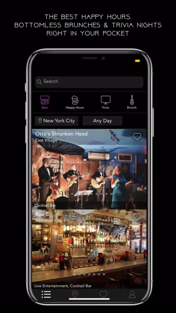The best Happy Hour Deals, Bottomless Brunches & Trivia Nights right in your pocket! Browse through a detailed list of drink specials and find your next NYC hot spot either by neighborhood or current location.