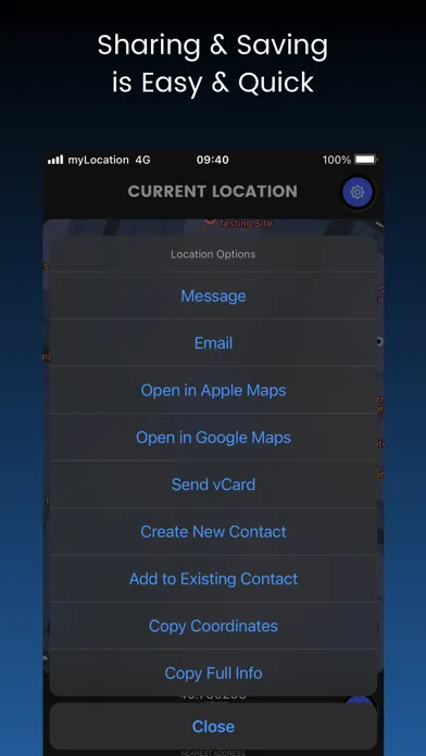 • Versatile Sharing Options: Share your location via text, email, social media, or even send a vCard contact file. Choose the method that suits you best.