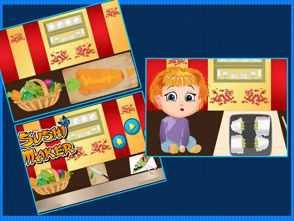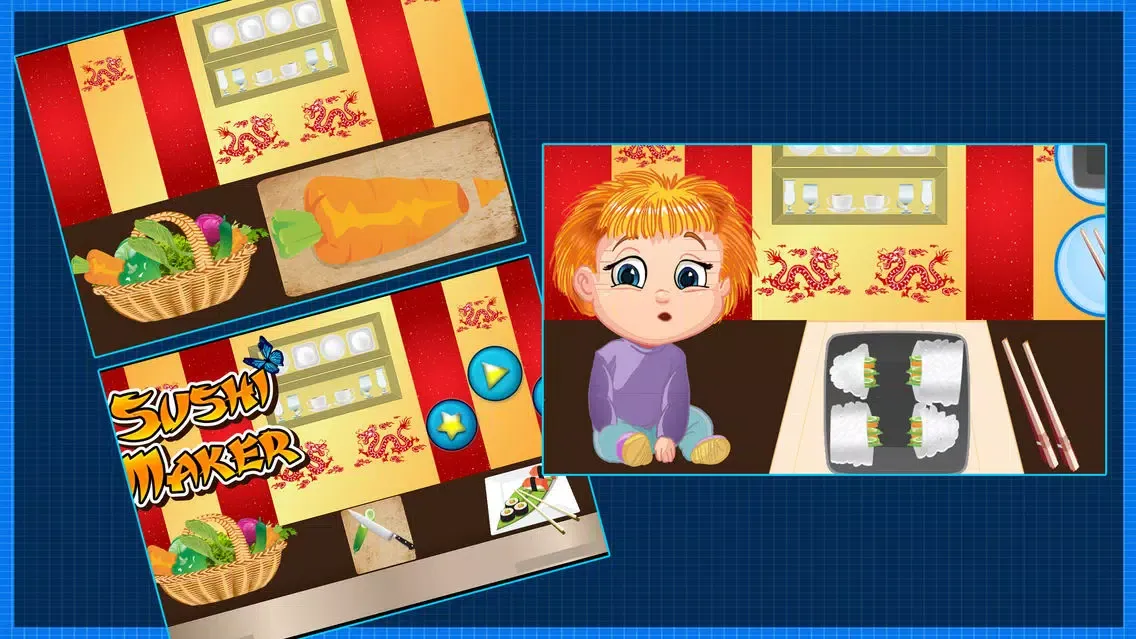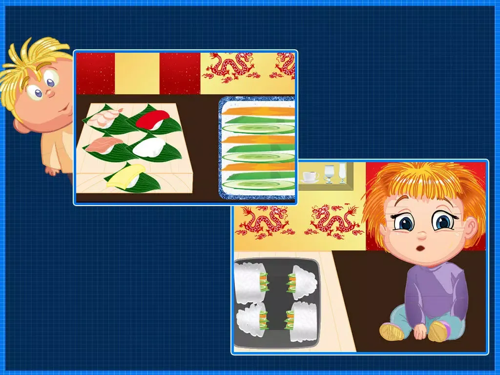 Little boys and girls get ready to learn Chinese food dishes with this crazy fun and cooking fever game. Kids like to bake and make delicious food in the home’s kitchen with adventure and fun. So little master chefs! It’s time work in a Chinese restaurant and bakes yummy sushi in the kitchen and serves it. Use your star cook skills and make best sushi cuisine. Cooking fever at its peak! Make your own cooking story with best experience.