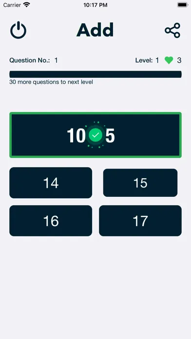Learn mode:- In learn mode , math learner app provides user with different levels to master his math skills and learn math starting from easiest point to difficult one. Each levels of consist of 30 questions. With each level crossed by user, math learner app will increase question complexity. User can set complexity of questions from setting page of app as per his age level or difficulty level. Math learner has 3 different difficulty levels 1) Beginner 2) Average 3) Expert