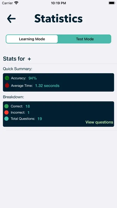 1) Learn mode (Practice mode) - Learn mode will help in learning as app will present 4 possible correct answer and user has to chose the correct answer.