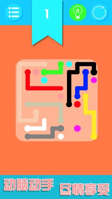 每一关都有几种不同颜色的点,越到后面颜色的种类就越多,这时候就需要运用我们的大脑去思考如何让两个点连接起来。