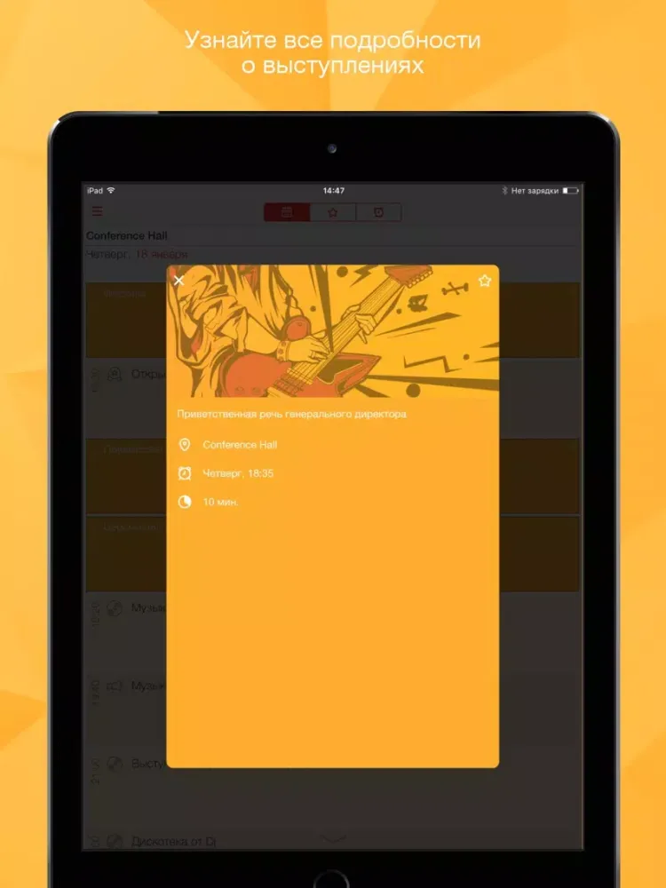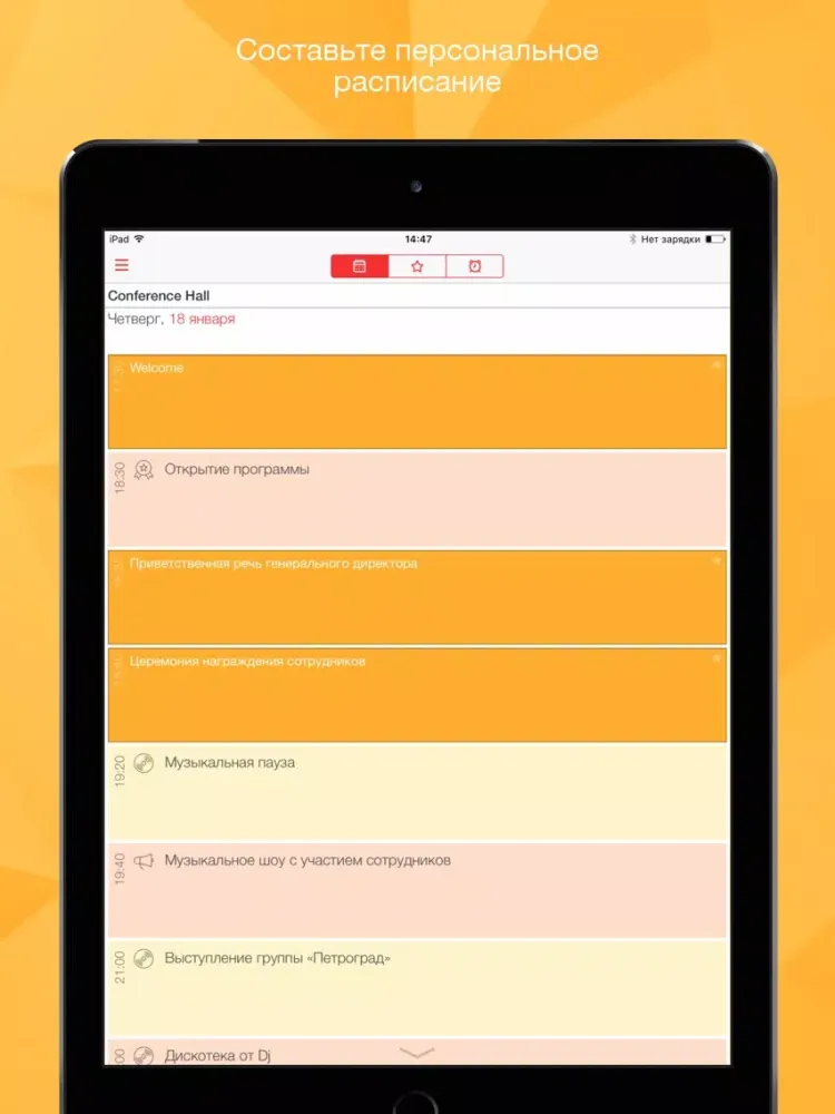 - составить собственную программу и получать оповещения о начале избранных событий.