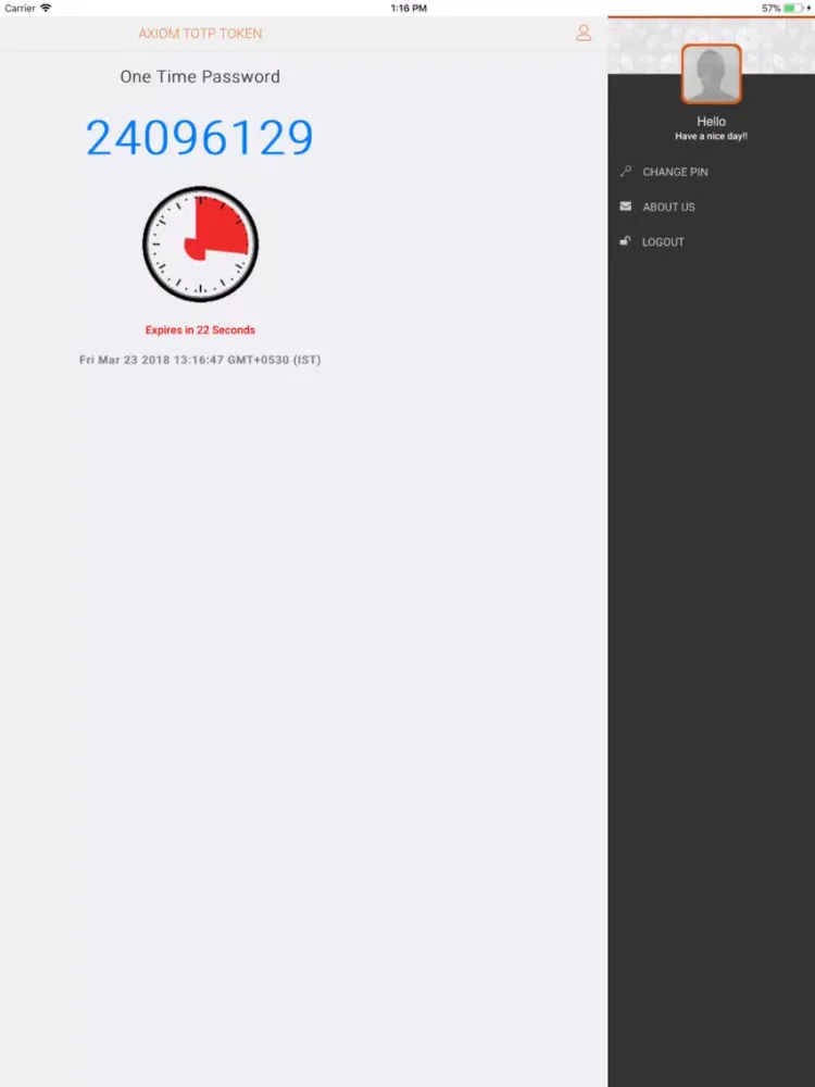 ภาพหน้าจอของ AXIOM TOTP TOKEN iPad