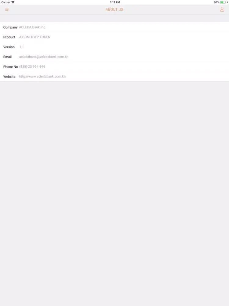 Make your mobile device a convenient, easy-to-use, anytime anywhere Security Token Authenticator. Protect your ACLEDA Swift Server Account with AXIOM TOTP Token for strong authentication. This app requires a software token for generating one-time passwords (OTPs) for authentication and authorization of your Swift Server login. The AXIOM TOTP Token 1.0 for your mobile device includes the following: