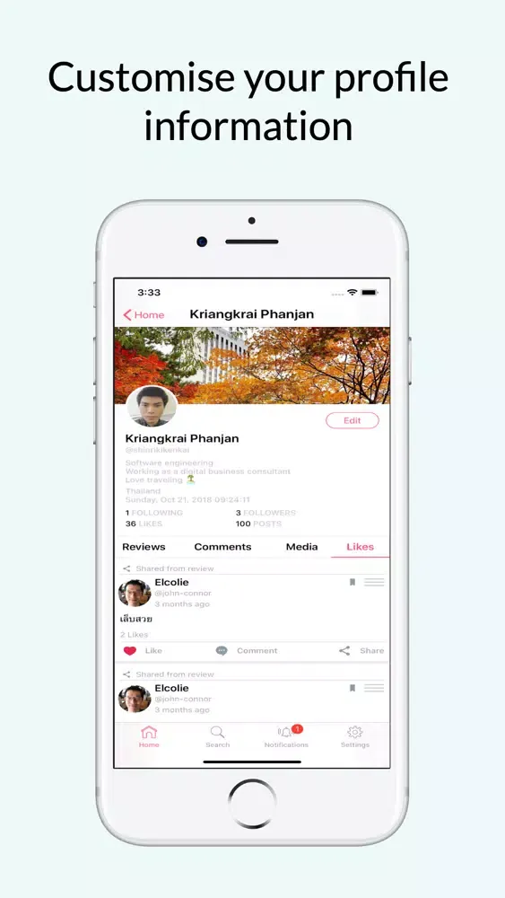 Herr helps you stay connected with your friends and reviewers. It is showing your media to the others. You can control over your videos and photos. Moreover, you can list them all easily from your profile page
