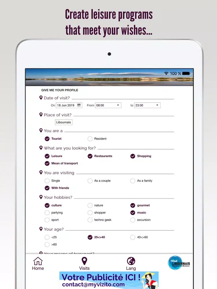 The Tourist Office of Libournais suggest you the first collaborative intelligence engine which guides you during your trip to build your own tourist itinerary.