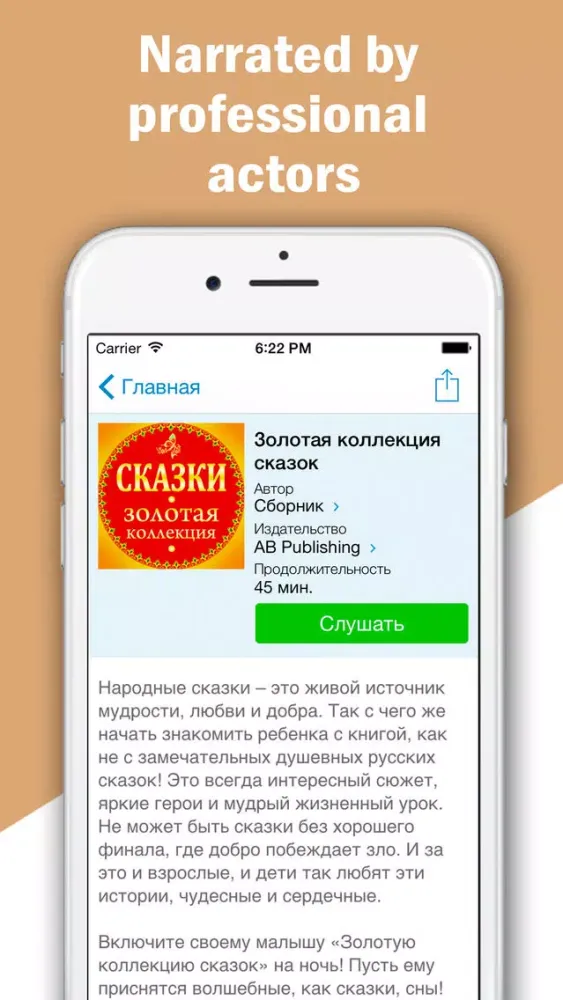 All the fairytales are voiced by actors and professional narrators.