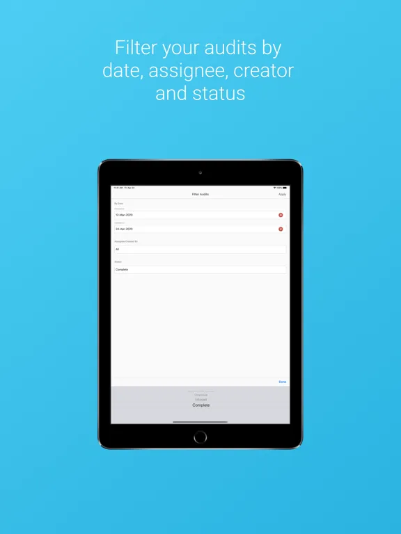 - Take Action: Actions can be created, assigned to audits and inspections, as well as to colleagues, and tracked right through to completion.