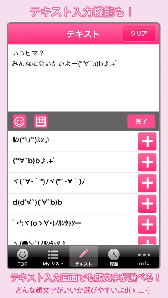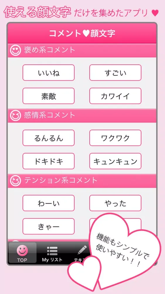 コメント♥顔文字はコメントに使いやすい選抜された顔文字だけを集めたアプリだから探しやすいし簡単♪♡d(o'∀`o)b♡