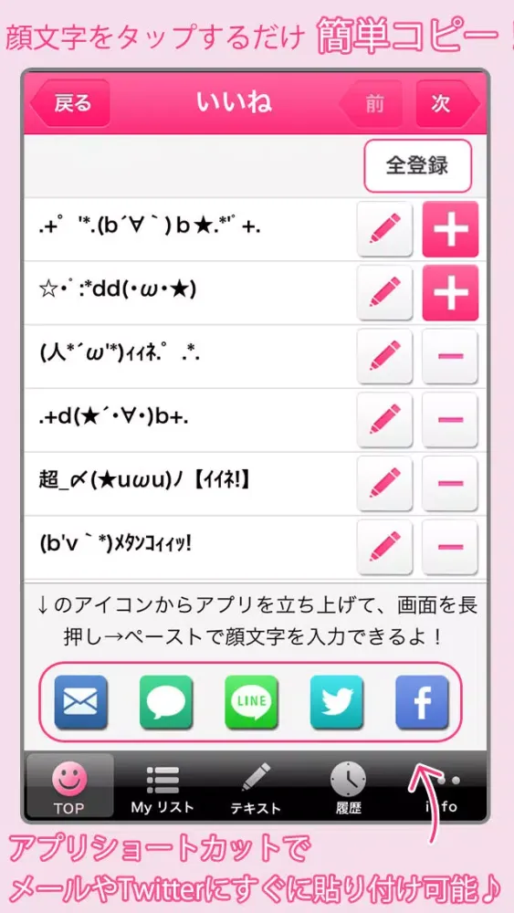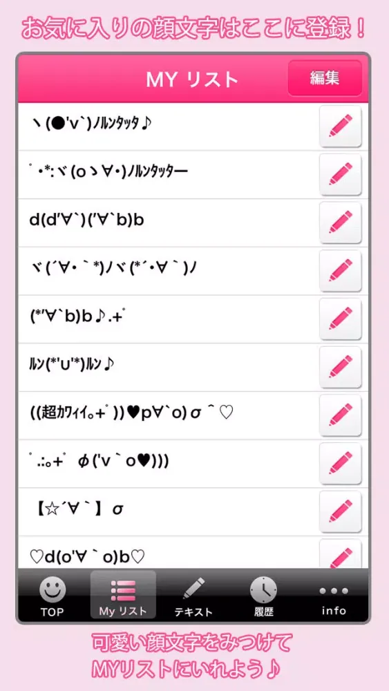 お気に入りの顔文字をMyリストに登録できちゃう^^