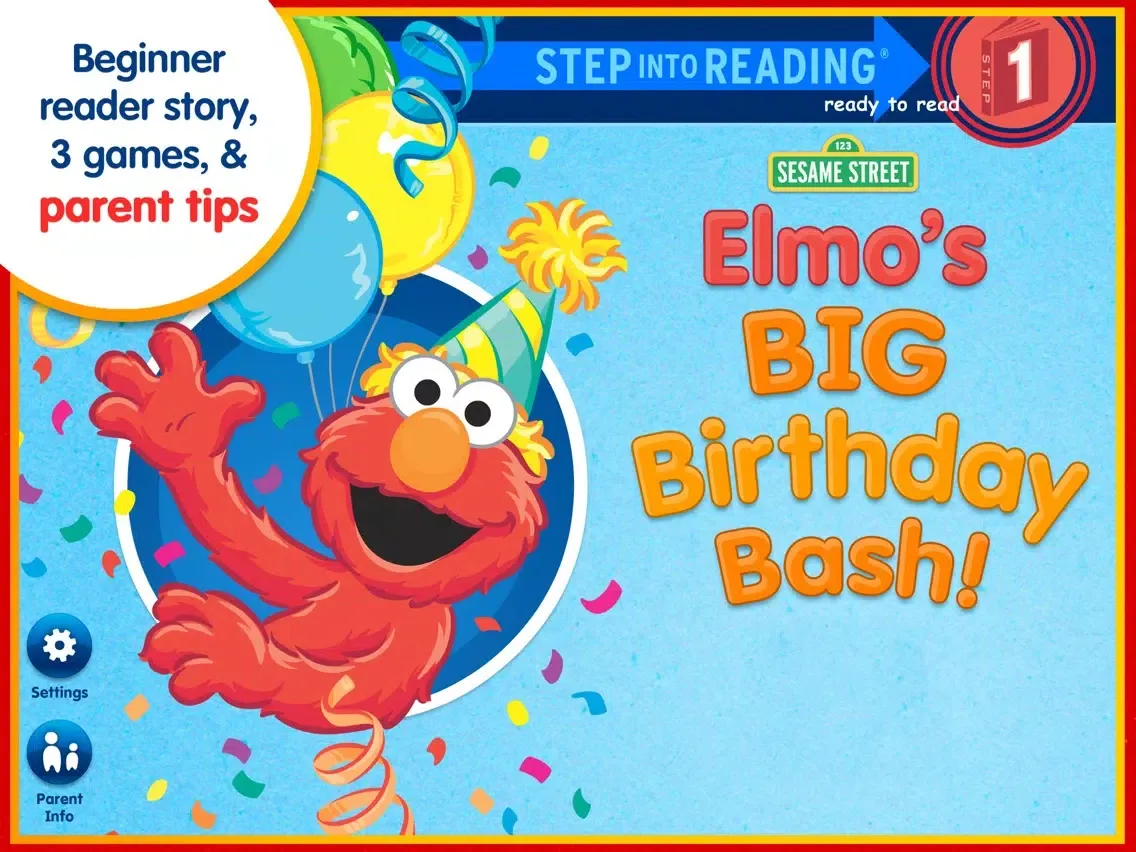 เกี่ยวกับ Elmo’s Big Birthday Bash! – A Sesame Street Step Into Reading App