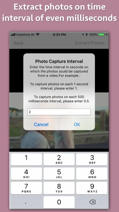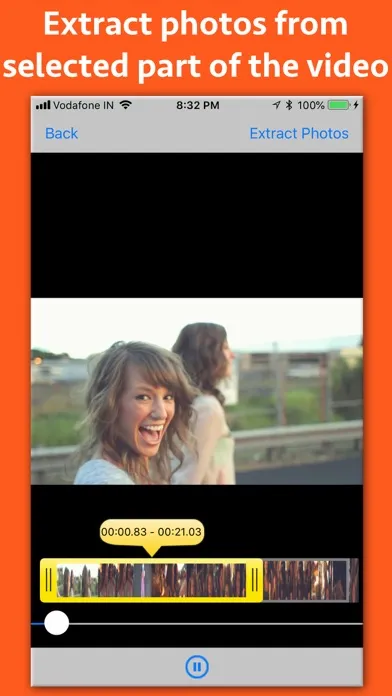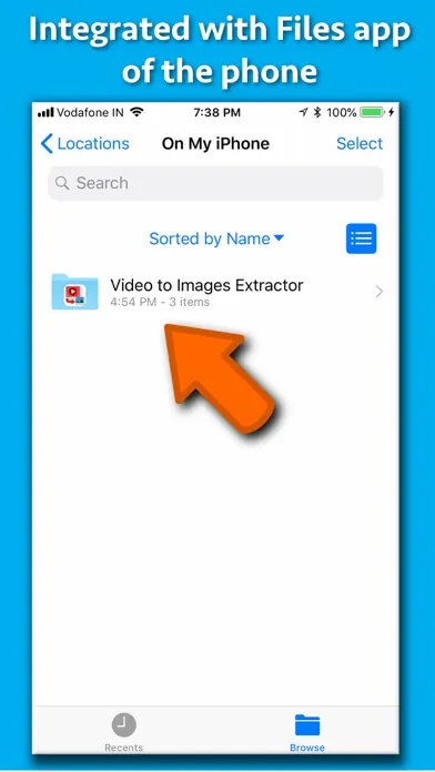 The application extracts high quality photos from a Video. It is tightly integrated with the "Files" application. All extracted photos could be accessed easily using the "Files" application.