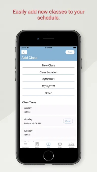 The way you add classes and assignments has changed for the better. You are now able to track classes that have different times on different days. You are also able to more quickly specify the remaining class details.
