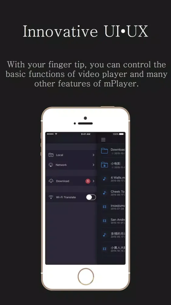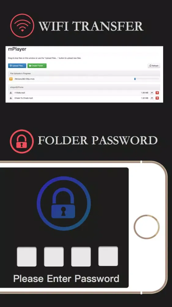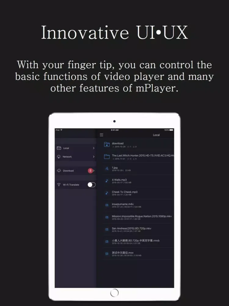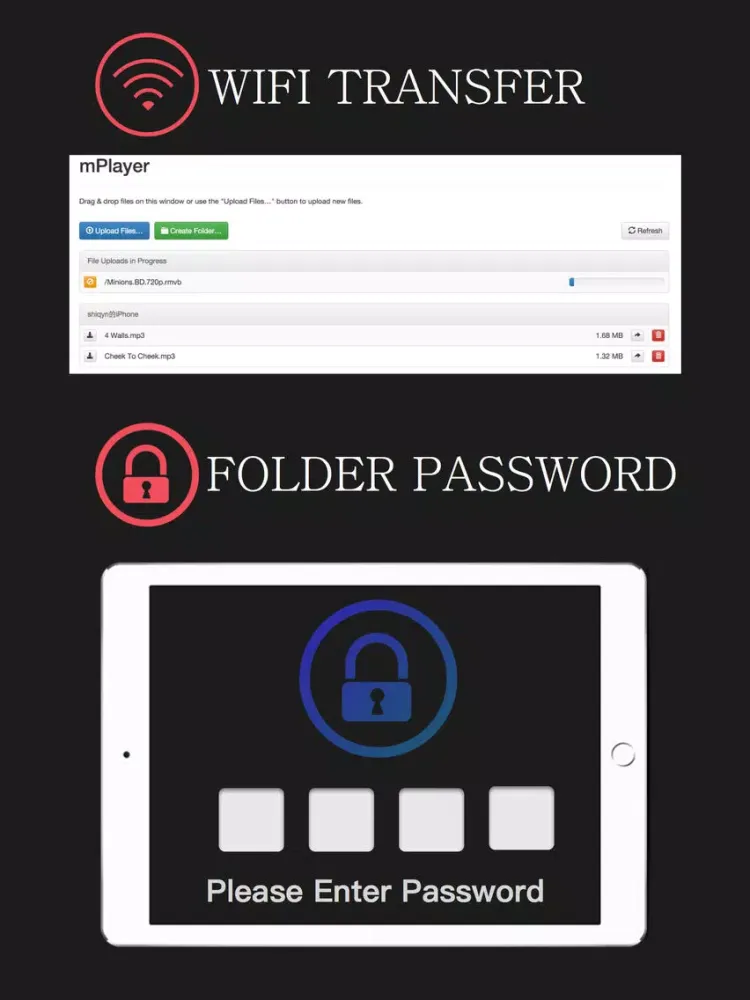 - Device->My Device(My iPhone/iPad)->Apps, drag and drop files to the mPlayer's documents