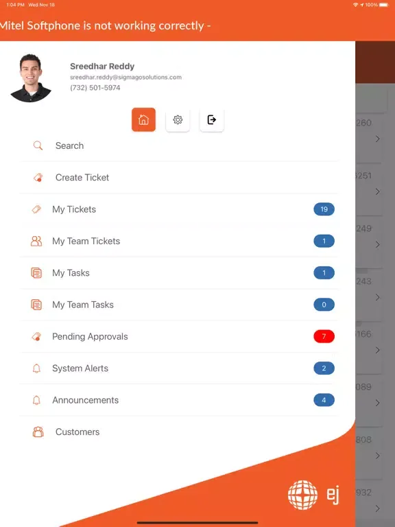 EJ Group Technician offers your technicians a seamless Cherwell mobile experience. It’s easy to use interface lets your Technicians interact with Service Requests, Incidents, Problems, Knowledge Articles, Approvals, and any Enterprise Service Management applications.