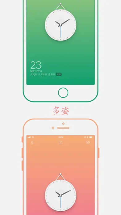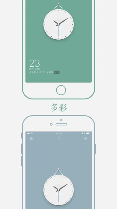 · 多种主题背景可以自由切换,目前包括纯色和渐变色主题,后续会加入纹理等拟物主题,相信可以搭配出您满意的时钟