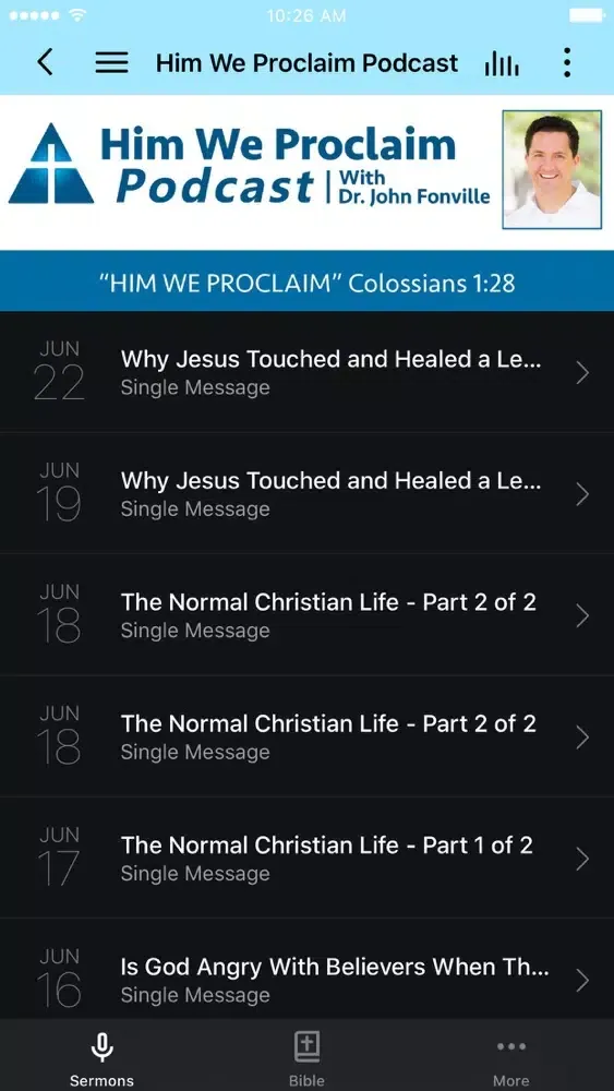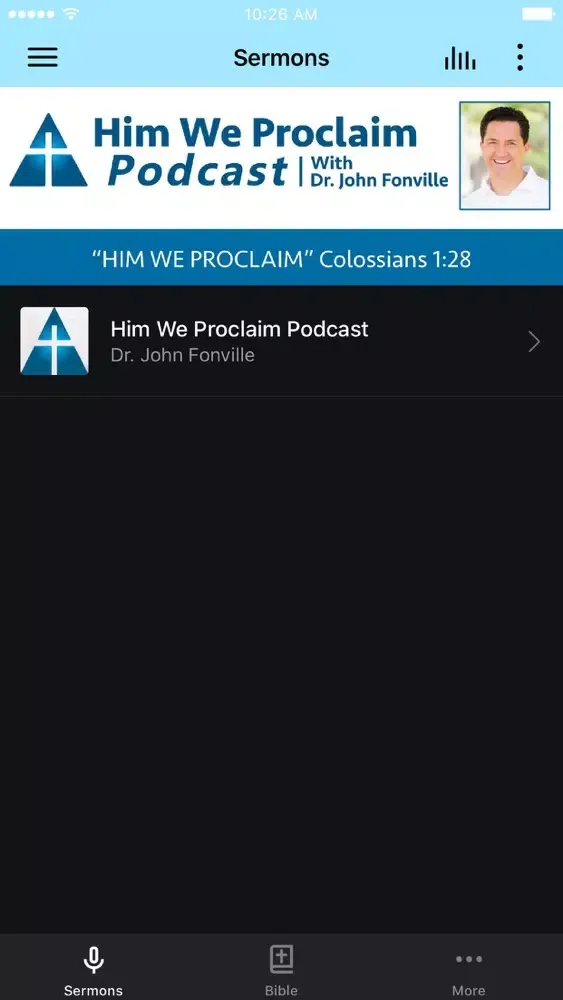 Him we Proclaim! The Him We Proclaim Podcast App links you to the radio outreach ministry of Dr. John Fonville of Jacksonville, Florida. You can hear John's daily 26-minute radio/podcasts for in-depth teaching into God's Word and a focus on the Gospel that is so refreshing.