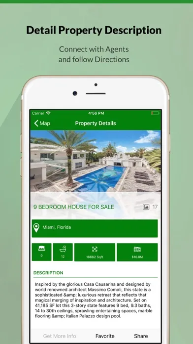 - GPS features allow you to view and navigate to homes near you.