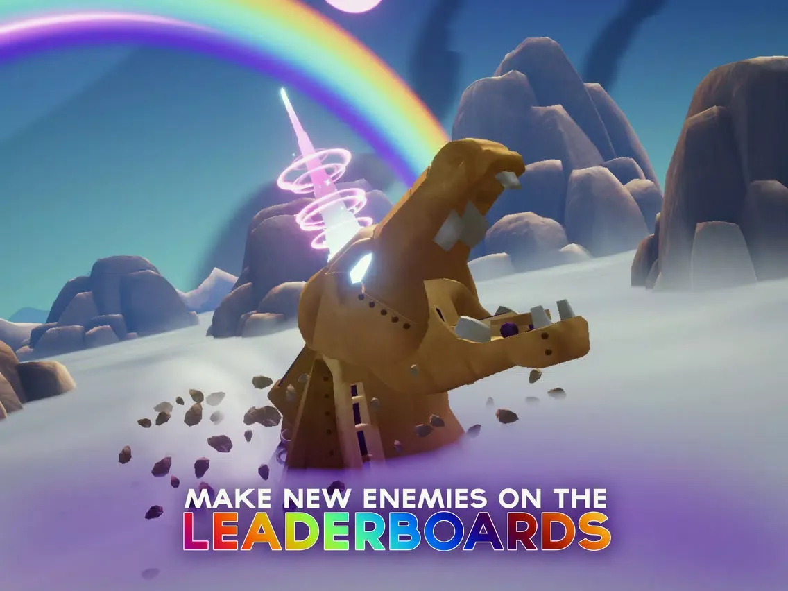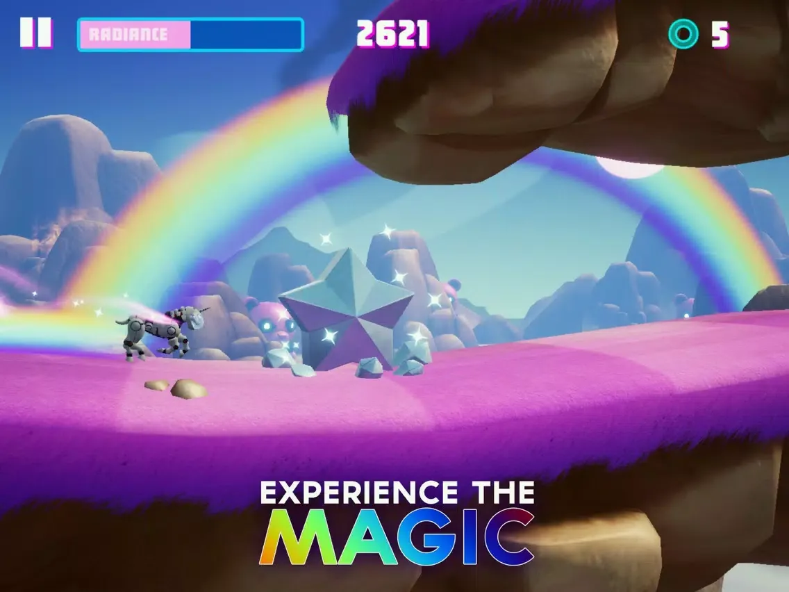 Behold mobile gaming's glorious return to glitter-clad annihilation in Robot Unicorn Attack 3! Dash through the sparkling stars; this time with a team of three runners at your fingertips. Gallop into the unending beyond, crashing through golden fairies to unleash Radiant Blast Mode. Build your citadel from the tears of failures past and construct stables to house ever more dazzling allies. Send your magnificent fleet forth on raids to collect gleaming piles of soul crystals. Recycle these unfortunate souls at mystical forges to conjure new unicorns and fuel your unstoppable glitzkrieg!