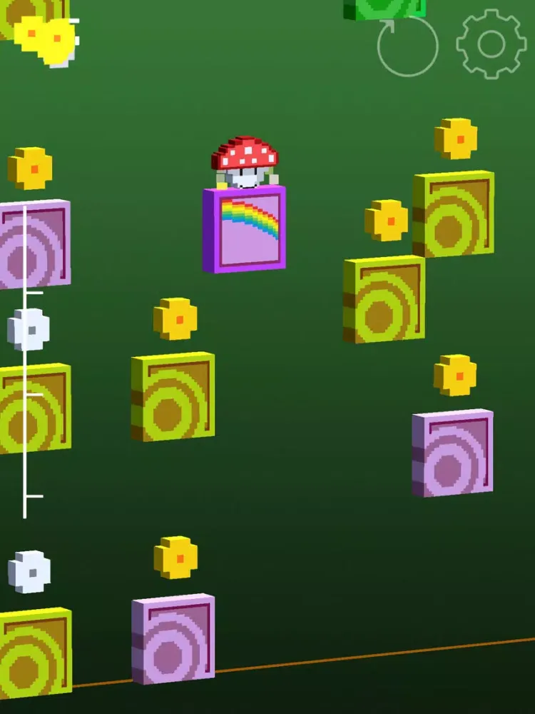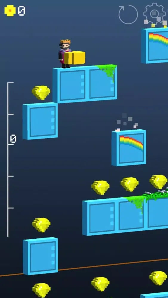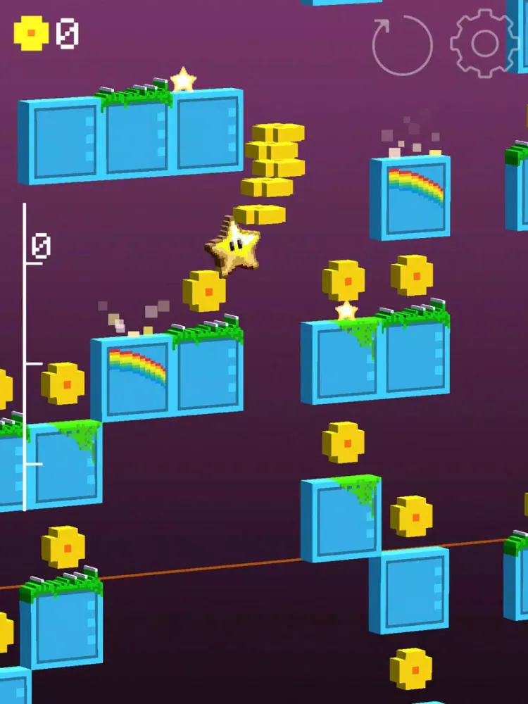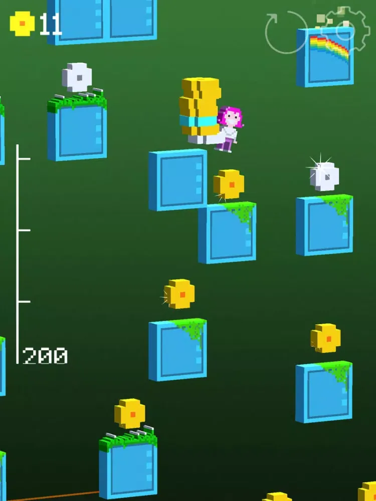 Once you jump on a rainbow platform, all collected coins are going to your bank of treasures and you can start collecting the next stack.