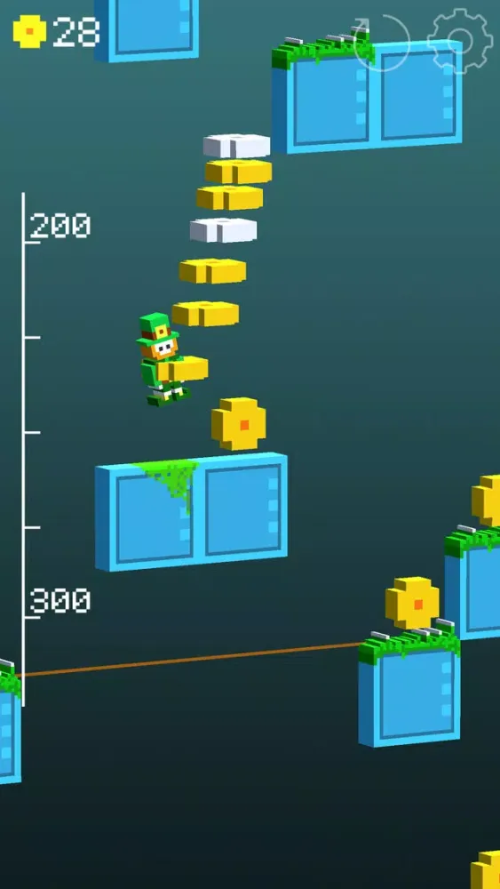 You are collecting lucky coins while jumping down.