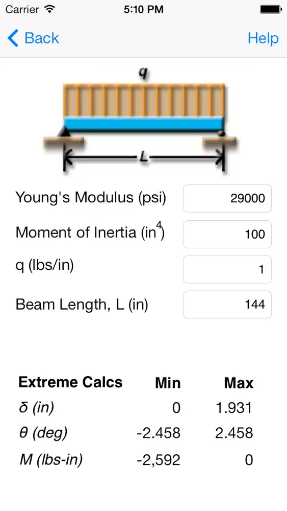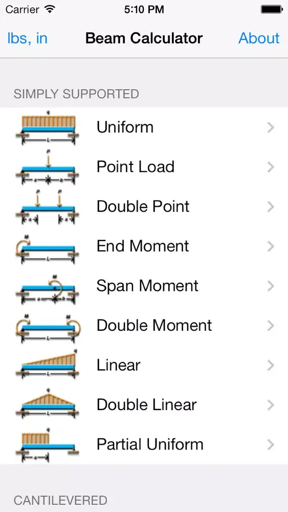 This app provides bending calculations for simply supported and cantilever beams under a variety of load conditions. Equations and plots are shown to help you understand and validate the techniques and principles employed in each calculation.