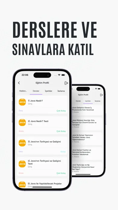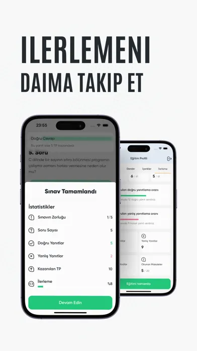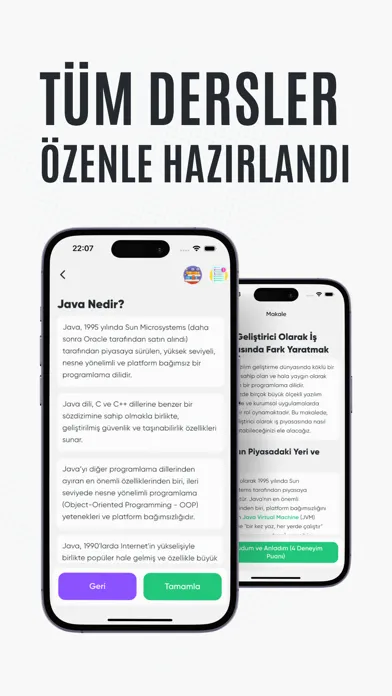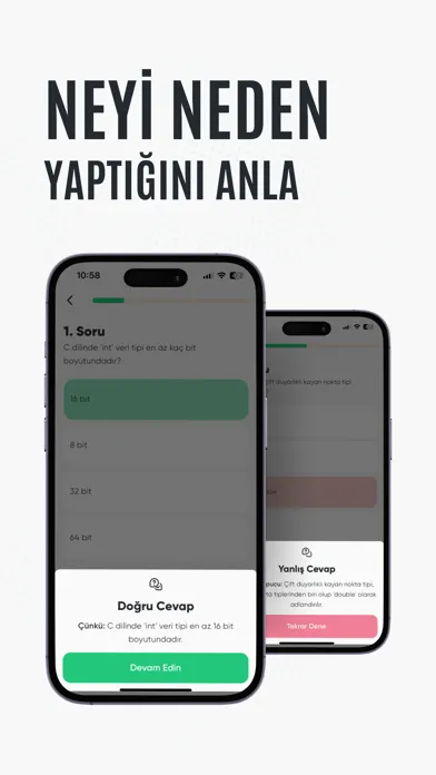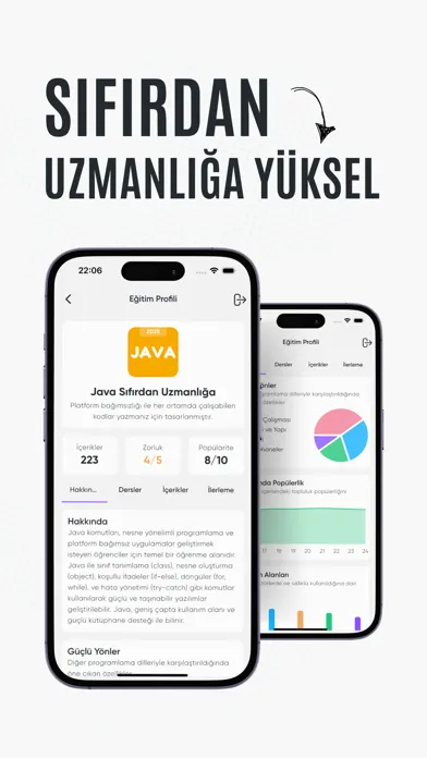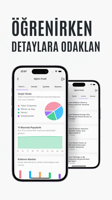 Uygulamamız sayesinde öğrenmek, her zamankinden daha esnek ve erişilebilir. İster yolculukta, ister kahve molasında, ister evde olun; etkileşimli derslerimize ve kodlama sorularımıza dilediğiniz zaman ulaşabilirsiniz. Kısa modüllerimiz, dengeli bir ilerleme sağlayarak sizi bunaltmaz.