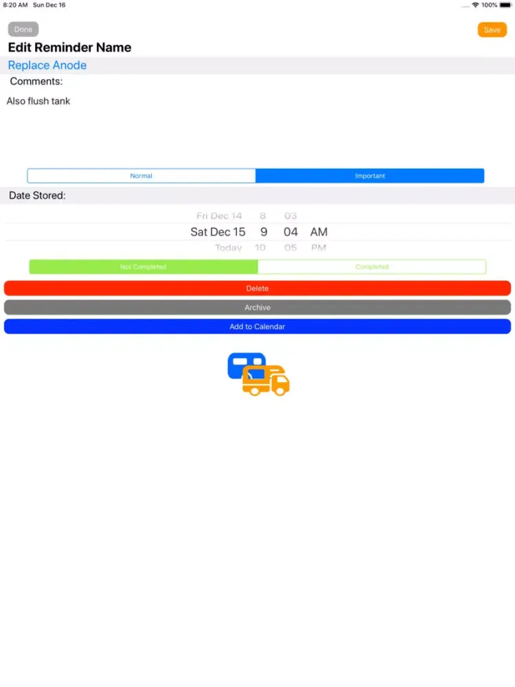 ภาพหน้าจอของ RV Reminder