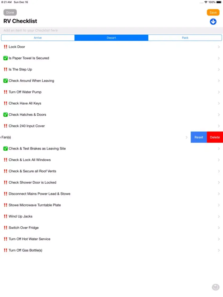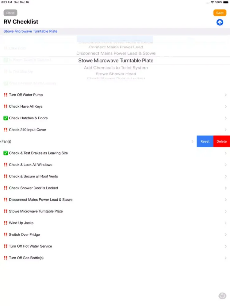 Once you have flagged that all items have been done, simple tap on the Reset button to reset the checklist ready for your next arrival or departure.