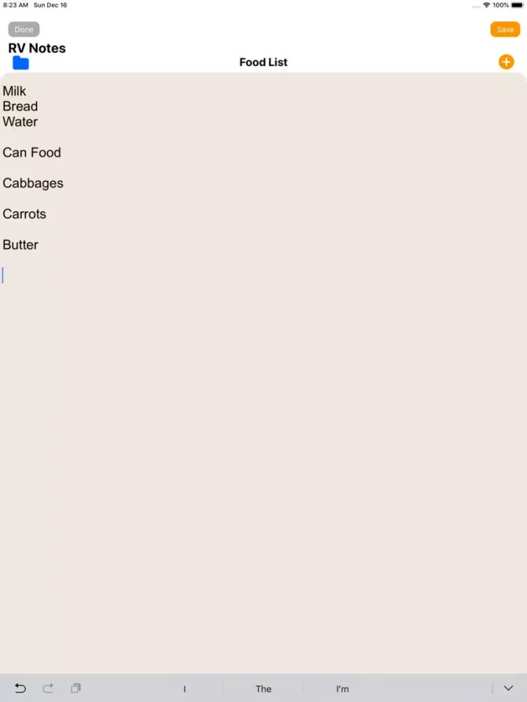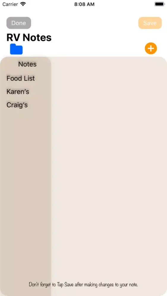 Another simple but useful feature is RV Reminder Notes, create a note by name and store a list..