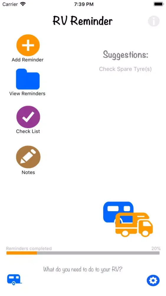 I am also a Rv'er and love travelling with my RV in tow.. However I wrote this app to help me remember things that I need to do to my RV so I can keep it safe and towing well.